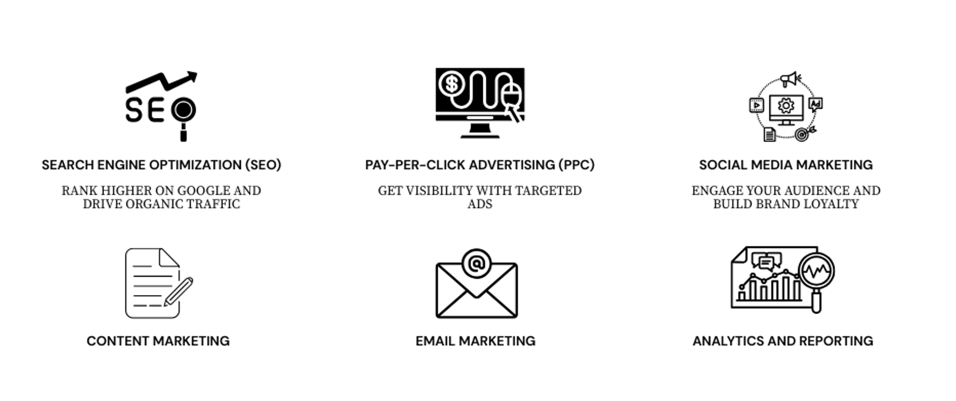 Is your online visibility struggling? Are you finding it difficult to reach your ideal customers? We solve these challenges with comprehensive, tailored digital marketing solutions. Our team of experts utilizes cutting-edge SEO techniques, strategic social media management, optimized PPC campaigns, impactful content marketing, and targeted email strategies to drive real business impact. We focus on understanding your specific needs and leveraging advanced analytics to ensure every campaign delivers a measurable return. We help service-oriented businesses cut through the noise and achieve their growth objectives.